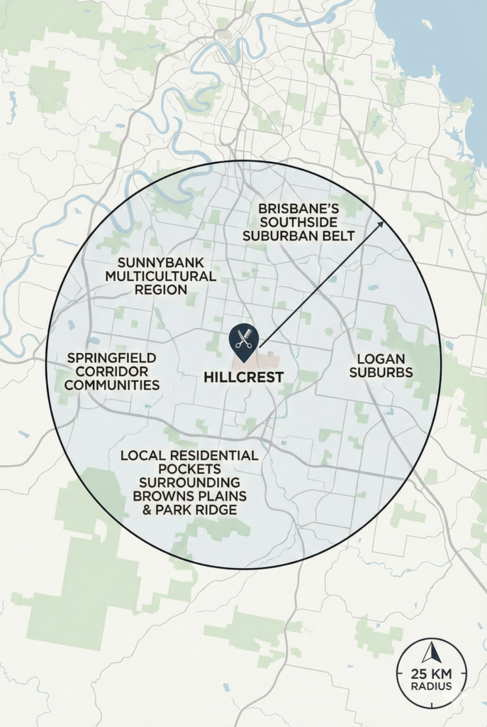 We also serve customers living in suburbs like Kuraby, Robertson, Eight Mile Plains and Drewvale. We fit naturally within the Southside identity and travel zone.